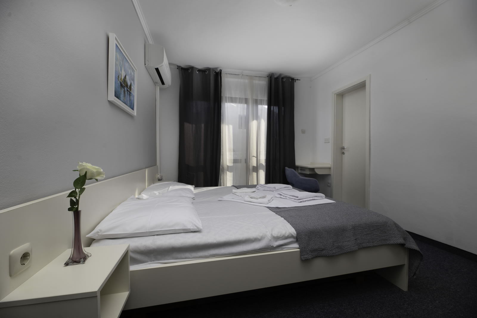 Každá izba má klimatizáciu, písací stôl, minichladničku, TV SAT s plochou obrazovkou, súkromnú kúpeľňu a balkón s výhľadom do záhrady alebo na  more. Kúpeľňa je vybavená toaletnými potrebami a fénom.